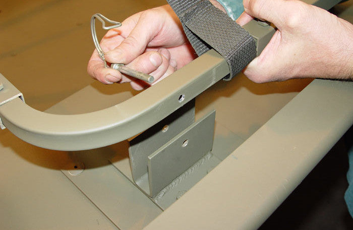 The blinds attach to the boat using four aluminum bases. Once the bases are installed, the blinds can be installed and removed easily using only 4 d-clip pins to hold it in place. This allows for easy removal of the blind during the off season. No need to drill holes into your gunnels to permanently attach these blinds. The new GO-DEVIL Boat Blinds were designed to be adjustable, allowing for multiple set up positions. The use of snap buttons, pre drilled holes and adjustable nylon straps make adjustment quick and easy. Once you get to your spot, simply raise the blind and lock it in place by hooking the 2 brass clasps. That is all there is to it. This blind is constructed using Avery RealGrass and backed with high strength plastic netting for durability.